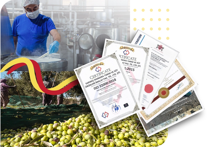 Sarıbaş Süt ve Zeytin Ürünleri olarak üretimin her aşamasını titizlikle denetlemeyi ve uluslararası kalite standartlarını gözetmeyi ilke edindik. Geleneksel damak tadını, çağdaş teknolojilerle buluşturarak sağlıklı ve hijyenik koşullarda üretim yapmayı sürdürmekteyiz.